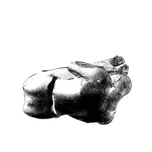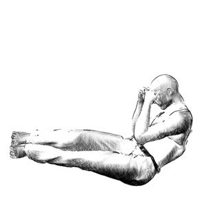 Continue to bend and twist vigorously exposing the calf and thigh muscles.